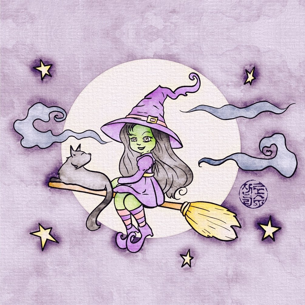 Get ready to color your way into the Halloween spirit with this delightful and spook-tacular witchy scene!