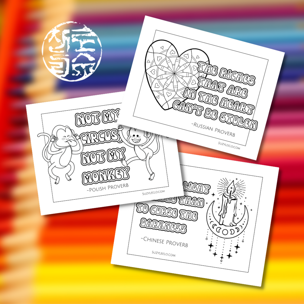 Miguel Cervantes said, “Proverbs are short sentences drawn from long experience.” These sayings can have a lot of deep meaning and impact. They help teach our young and remind our old. Perhaps that is why proverbs are passed on through the generations. There are so many from around the world that make you think! I’ve created some proverbs coloring posters and coloring postcards for you to enjoy. Do you have a wise saying that has been passed on in your family? Send me a message to tell me all about it. I would love to consider it for a future proverbs poster to color.